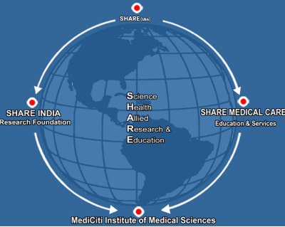 Society for Health Allied Research and Education India (SHARE INDIA) is a not-for-profit research organization dedicated to advancing biomedical and health-related research while fostering a vibrant research culture across India's medical institutions. Registered on 6th February 1986 under the Andhra Pradesh Public Societies Registration Act, SHARE INDIA is recognized as a Scientific and Industrial Research Organisation (SIRO) by India's Ministry of Science and Technology and holds 80G tax-exempt status for donations.